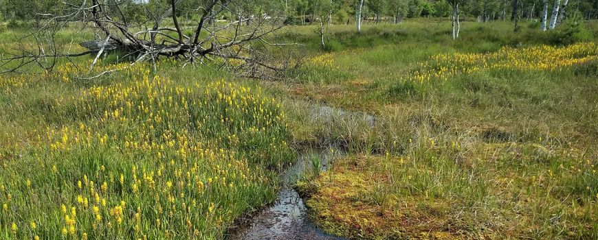 Wanneer het grondwater op de ene plek zuur en voedselarm is, terwijl op de andere plek juist kalkrijk en voedselrijk toestroomt, ontstaan er gradiënten. Deze verschillen zorgen voor een grote variatie aan karakteristieke vegetatie en diersoorten, zoals kleine zeggemoerassen (leadfoto) en gevlekte glanslibel. Doordat er vanuit landbouwgebieden meststoffen uitspoelen is veel grondwater en beekwater nu voedselrijk en ontstaat er minder variatie aan standplaatscondities. Binnen het project ADMIRE kijken we daarom ook naar mogelijkheden om het waterpeil en de waterkwaliteit te verbeteren. Bijvoorbeeld door een aangepast beheer in bufferzones rondom veengebieden, waar het voedselrijke water wordt gezuiverd in percelen met ‘natte landbouw’ (paludicultuur).