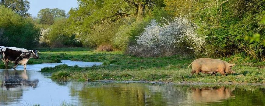 Braamstruiken, sleedoorn en meidoorn, waarin jonge bomen beschermd door hun doorns en stekels kunnen opgroeien, vormen een mozaïek dat voor veel variatie in het landschap zorgt. Met extensieve begrazing door runderen, reeën, damherten en exmoorpony's worden geleidelijke overgangen in het landschap gecreëerd die voor veel soorten belangrijk zijn. De tamworth-varkens van het landgoed vervullen ecologisch gezien de rol van wilde zwijnen (die hier niet voorkomen). Zij zorgen voor bodemverstoringen die gunstig zijn voor pionierplanten, die weer als waardplanten voor veel soorten vlinders kunnen dienen.