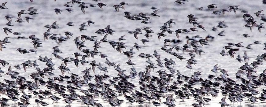 De bonte strandloper is een van de kleinere wadvogels. Ze broeden ver ten noorden van ons, maar gaan in juli alweer richting het zuiden. Vanaf augustus zijn ze dan hier te vinden, vooral in de Waddenzee. Nu eerst nog in hun onmiskenbare zomerkleed, met een zwarte ‘bonte’ vlek op hun buik en mooi oranjebruin getekend aan de bovenzijde. Een vluchtje ‘bontjes’ laat heel leuk al die zwarte buikjes zien. De kuikens van dit jaar hebben die zwarte vlek nog niet, maar wel zwarte stipjes op de borst. Tot en met november zijn er hier veel, daarna trekt een groot deel verder zuidwaarts.