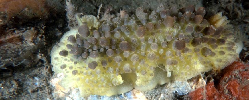 Foto's: Marion Haarsma (leadfoto: een opvallend grote, nieuwe zeenaaktslak voor Nederland uit de Oosterschelde: de Grote dan wel Gladde wratslak Doris verrucosa)