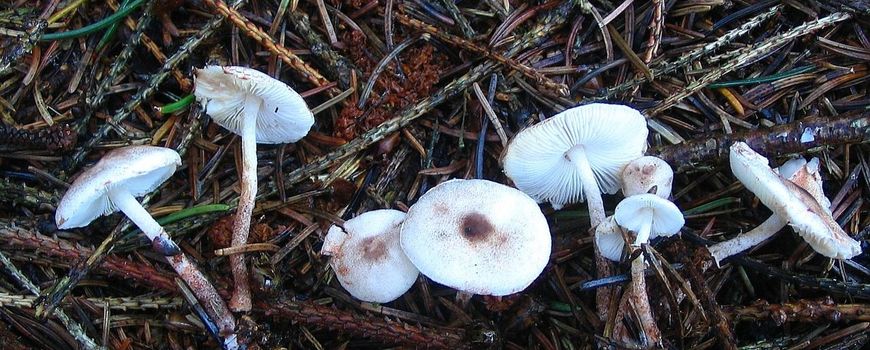 Na zware regenval opvallend veel Glinsterende champignonparasolletjes