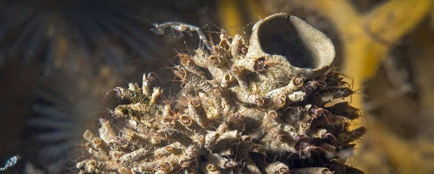 Foto's: Marion Haarsma (leadfoto: koker van een kokerworm, overwoekerd door de minieme kokertjes van de Pacifische klauwvlokreeft); Ad Aleman