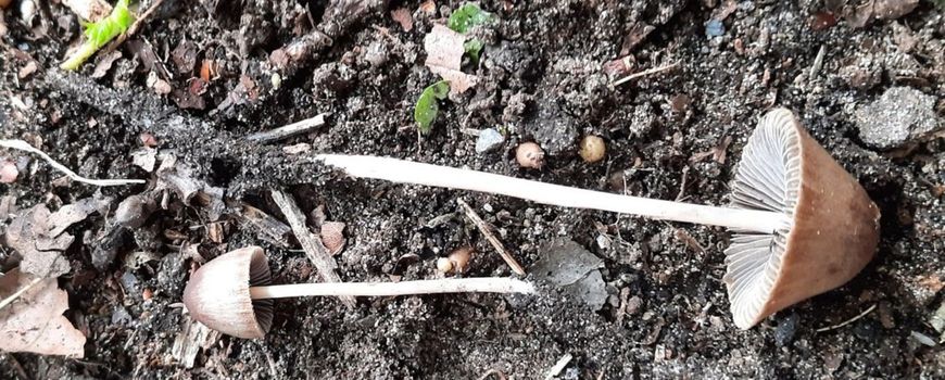 Penwortelfranjehoed (Psathyrella longicauda) is overal in ons land behoorlijk zeldzaam en werd slechts één keer eerder in Noord-Holland waargenomen. Alleen in het zuidwesten van ons land komt deze soort meer voor. Bijna niemand van de aanwezigen had ooit van deze soort gehoord. Volgens de boeken kan het ondergrondse deel van de wortel 7 tot 9 centimeter lang zijn. De 'penwortels' van onze exemplaren braken af toen we ze uit de humus probeerden te verwijderen. We wilden de twee exemplaren heel graag uit de grond halen, want we hadden geen idee om welke Franjehoed het zou kunnen gaan. We gaan ervanuit dat het afbreken niet is gekomen door onbehouwen gedrag. Je bent er absoluut niet op bedacht dat een franjehoed uitgerust is met zo’n lange penwortel.