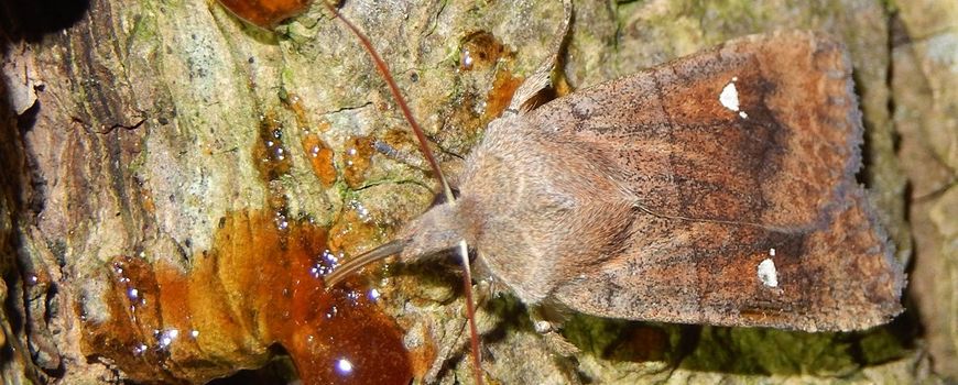 Nature TodayDe wachtervlinder is blijkbaar geen koukleum, want deze nachtvlinder ontpopt pas als de herfst begint. De vlinders vliegen dan zo’n twee maanden, tot half november. In de winter doen ze het wat rustiger aan en houden ze een winterrust, maar op een milde winternacht vliegen ze gerust nog rond. Al eind januari zit de winterslaap erop en worden ze weer actief. Wachtervlinders komen algemeen voor in het hele land: in bossen, parken, struwelen en tuinen. Je kan ze lokken met stroop en ze komen ook op licht af. De naam hebben ze niet omdat ze zo geduldig een winterlang wachten. Op elke vleugel zit een opvallende witte vlek, met daarnaast nog twee piepkleine witte vlekjes. Net als een planeet met twee manen, en in de sterrenkunde worden die ook wel ‘wachters’ genoemd, als bewakers. De Engelse naam voor de vlinder heeft dezelfde oorsprong: the satellite.
