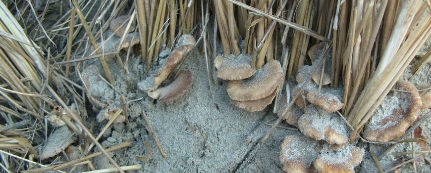 Onder dergelijke omstandigheden zorgen wind, zeewater en scherp zand ervoor dat alleen de levensvormen kunnen overleven, die daar echt thuishoren. Tegenwoordig weten we dat dit er veel meer zijn dan vroeger werd gedacht. Er komen in dit milieu speciaal aangepaste paddenstoelensoorten voor. Met name de Helmharpoenzwam (Hohenbuehelia culmicola, RL: Bedreigd) en de uiterst zeldzame Geelbruine helmharpoenzwam (Hohenbuehelia bonii) zijn meesters in het overleven in dit milieutype. Ze overleven vooral vanwege de aanwezigheid van dode delen van Helm, zoals dode wortels en wortelstokken.