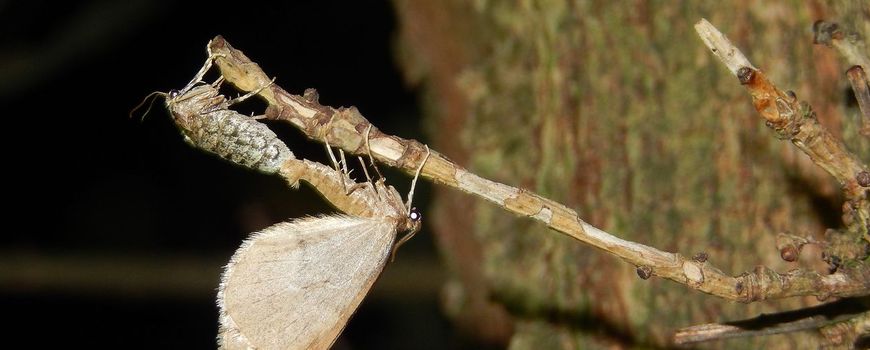 Er zijn meer nachtvlinders die juist de koude – en zo lijkt het minder aantrekkelijke – winterperiode gebruiken om zich voort te planten. Het kost natuurlijk veel energie om met die lage temperaturen toch actief te kunnen zijn, maar het heeft ook voordelen. In de winter zijn er veel minder natuurlijke vijanden en dat betekent dat ze juist weer minder hoeven te investeren in de bescherming daartegen. U heeft ze vast ook wel eens gezien, want de kleine wintervlinder is een algemene nachtvlinder die op bijna alle plekken met bomen en struiken voorkomt. De mannetjes zitten aan het begin van de avond op de stam van bomen. Ze vallen dan erg op, omdat ze hun vleugels boven hun lijf hebben opgeklapt. Die vleugels zijn licht en reflecteren uitstekend het licht van een zaklantaarn. Je ziet dan van die lichte driehoekjes, als zeiltjes van zeilboten, tegen de stam zitten. Soms wel drie, vijf, vijftien of zelfs honderd bij elkaar.