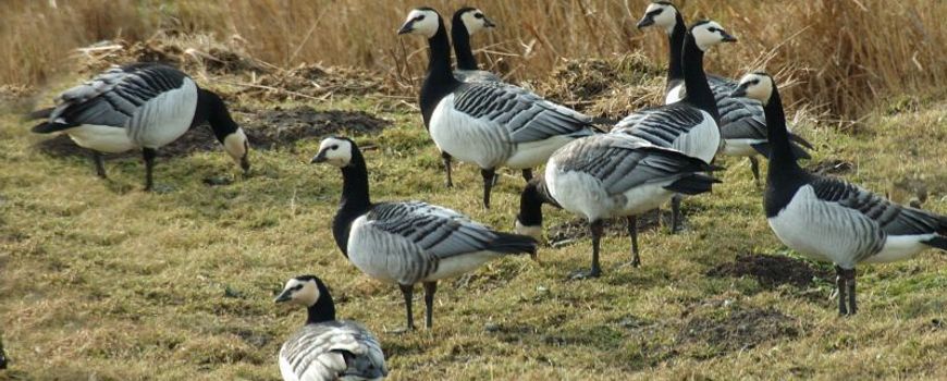 Nature TodayBrandganzen maken dankbaar gebruik van onze weilanden als ideaal winterverblijf. De zwart-witte ganzen zijn eind september van de Russische toendra vertrokken zodra het daar fris werd. Na wat tussenstops zijn ze hier eind oktober aangekomen. In de loop van de winter zullen de aantallen nog wat oplopen. Dat zijn brandganzen die in de buurt overwinteren, maar nog wat verder trekken. In Nederland en aan de Noord-Duitse kust tot aan Denemarken overwinteren alle brandganzen die in Rusland broeden. Je ziet ze vooral in Friesland, rond het IJsselmeer, in Zeeland en langs de rivieren. Maar bij vorst, zoals nu, vliegen ze even naar Zuid-Nederland. In maart trekken ze weer naar Rusland. Nog genoeg tijd dus om deze gans met het vriendelijke gezicht te zien!