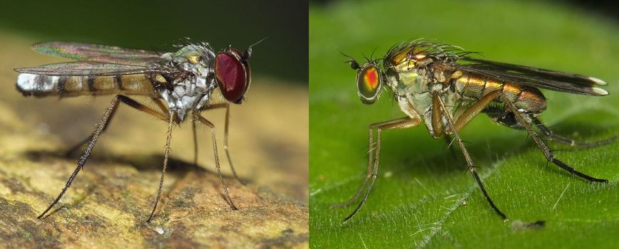 Foto's: Jur Heijnen (leadfoto: Argyra leucocephala en Poecilobothrus nobilitatus); EIS Kenniscentrum Insecten