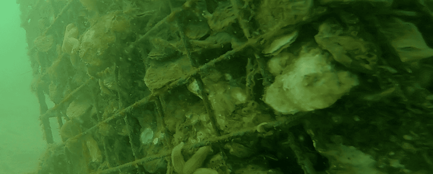 Oesterkorven onder water in de Voordelta. Je kan de video ook op YouTube bekijken (Bron: ARK Rewilding Nederland)