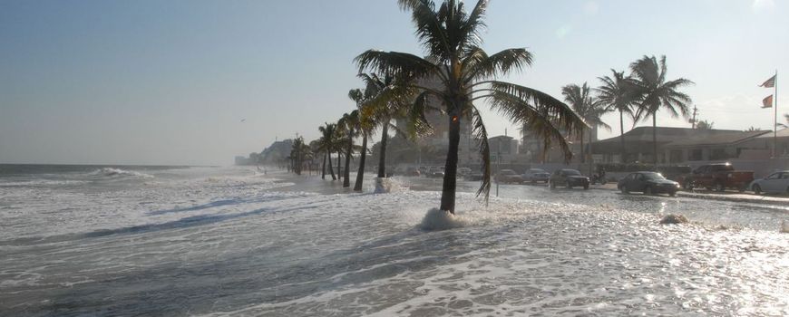 Beeld: Dave, Flickr (leadfoto: de zee spoelt over een kustweg bij Fort Lauderdale, Florida); Thinksketch.com; David Tucker, Daytona Beach News-Journal