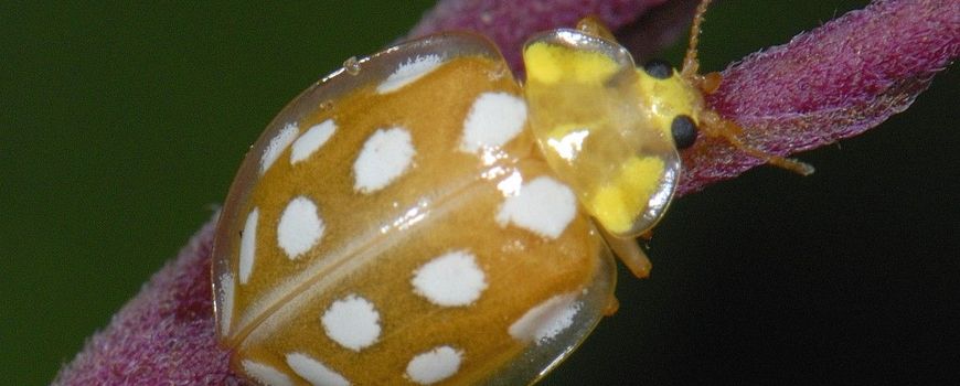 Nature TodayMeeldauwlieveheersbeestjes zijn actief in het voorjaar en de zomer, maar worden vooral in het winterhalfjaar veel gezien. Ze overwinteren onder boomschors of in het strooisel en vallen dan nogal op met hun lichtoranje kleur tussen al dat grauw en grijs. Ze hebben zestien witte vlekken en opvallend is de doorzichtige en omgeslagen rand van het dekschild. In het voorjaar worden ze actief en worden ook de eitjes gelegd. Zowel de larven als de volwassen lieveheersbeestjes eten meeldauw, schimmels die bladeren aantasten. Handig voor in de moestuin dus!