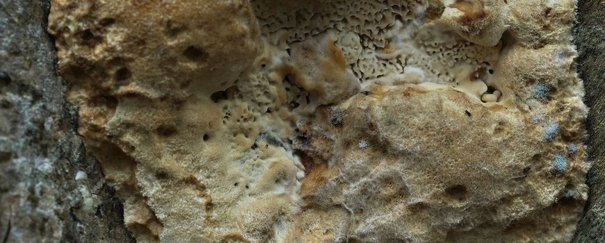 Op zoek naar winterpaddenstoelen vonden we een mooie weerschijnzwam op ooghoogte in de vork van een wilg. In eerste instantie kon niet worden gezegd om welke soort weerschijnzwam het ging. Na determinatie thuis moest het gezien een aantal unieke kenmerken wel gaan om een Dunne weerschijnzwam (Inonotus cuticularis, Rode Lijst: kwetsbaar). De Dunne weerschijnzwam is een soort die volgens de boeken vrijwel uitsluitend wordt gevonden op Beuk, maar ons exemplaar troffen we in de vork van een zeer oude Schietwilg (Salix alba).
