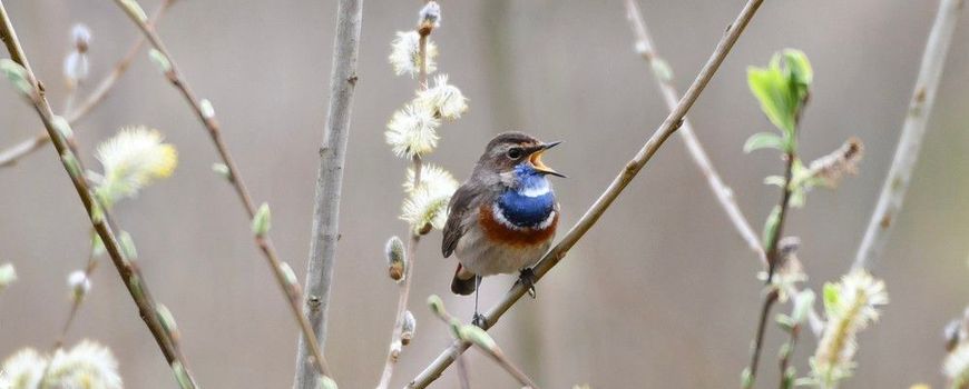 Nature TodayHet kan bijna niet anders of je hart maakt een huppeltje wanneer je een blauwborstman goed in de kijker hebt. Dat lichte hemelsblauw! Het lijkt bijna alsof ze zelf ook best weten hoe mooi ze eruit zien, zo trots zitten ze soms in een struik of rietstengel te zingen. De vrouwtjes hebben niet de blauwe borst, maar wel een wit befje met een zwarte zoom en net als de mannen ook een oranje staart met zwarte eindband. Ze zijn er nét, zoals altijd komen rond half maart de eerste. Eind maart zijn ze er allemaal, terug uit Spanje, Portugal en West-Afrika. Vaak keren ze terug naar dezelfde plek om te broeden. Een combinatie van water, struweel en bos vinden ze super, op die plekken kunnen ze heel algemeen zijn. Bijvoorbeeld rietmoerassen en laagveengebieden, maar ook op natte heide en in beekdalen. Ga op zoek en laat je hart stelen door de blauwborst.