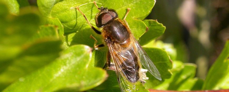 Nature TodayOp nectar en stuifmeel in bloesem en andere bloeiende planten komen allerlei insecten af, maar honingbijen vormen vaak de hoofdmoot. Toch is niet elke bij ook echt een bij… Bijvliegen zijn zweefvliegen die – de naam zegt het al – veel op bijen lijken. De kegelbijvlieg is een soort die al vroeg in het jaar vliegt en nu veel te zien is. Ze komen in het hele land voor, ook veel in tuinen. Als ze even stilzitten op een bloem kan je ze goed bekijken. Het borststuk en achterlijf zijn donker en vrij behaard, op het achterlijf zitten bovenaan twee gele vlekken. Hun unieke kenmerk: gele voor- en middentarsen oftewel ‘gele tenen’. Maar om dat zien moet je wel een hele scherpe blik hebben! De vrouwtjes zijn wat breder, de mannetjes hebben een driehoekig achterlijf. Die mannen zijn vaak zwevend te zien, rustig hangen ze stil in de lucht boven een paar vrouwelijke kegelbijvliegen.