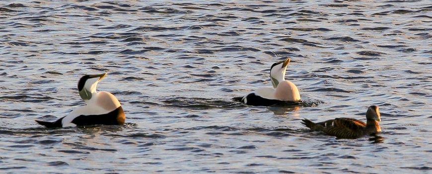 Nature TodayOm eidereenden te zien moet je op de Wadden zijn, daar houdt het overgrote deel van de Nederlandse populatie zich op. Ze broeden daar in de duinen, maar eerst moet er natuurlijk gebaltst worden. Dat doen de eidermannen ontzettend toegewijd met een wiegend dansje op het water. Het is best bijzonder dat deze eend in Nederland broedt, de meeste broedgebieden liggen veel noordelijker, aan de Scandinavische kusten en in IJsland. In het verleden breidde de soort zich uit naar het zuiden met een eerste broedgeval in Nederland in 1906. Ze overleefden de slechte waterkwaliteit in de jaren 60, maar de afgelopen dertig jaar namen de aantallen weer af omdat de kokkels en mosselen die ze eten werden weggevist. Nu lijkt de populatie stabiel, maar de verdere klimaatverandering belooft weinig goeds voor deze noordelijke soort.