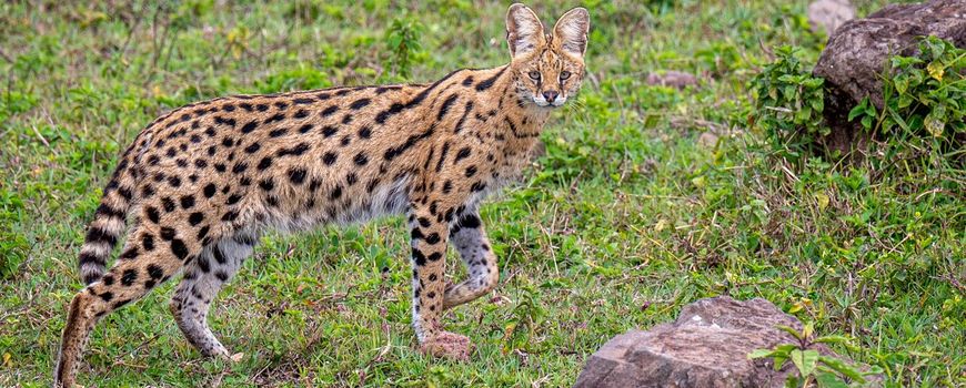 De serval (Leptailurus serval) komt wijdverspreid voor op de Afrikaanse savanne ten zuiden van de Sahara, maar er zijn ook kleine populaties in het Atlasgebergte van Marokko en Algerije. Deze middelgrote katachtige is met een gewicht van 9 tot 18 kilo en een schofthoogte van zestig centimeter een slag groter dan de huiskat. Servals hebben een slank lijf met zeer lange poten, wat helpt bij het jagen in gebieden met hoog gras. De vacht is geelbruin met een combinatie van strepen en vlekken, de buik is vuilwit en de korte staart is afwisselend zwart en geelbruin geringd. De achterkant van de opvallend grote oren is zwart met middenin een duidelijke witte vlek. In sommige populaties, voornamelijk in bergebieden zoals het Ethiopische hoogland, is een melanistische variant algemeen. Het stapelvoedsel van de serval bestaat uit muizen, daarnaast worden ook andere kleine zoogdieren tot het formaat van een haas gegeten. In mindere mate staan ook hagedissen, slangen, vogels, insecten, vissen, kikkers en vruchten op het menu.