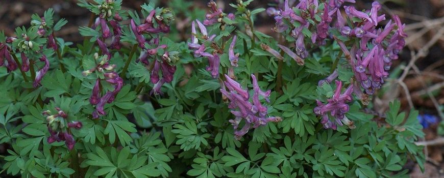 Nature TodayZe zijn nog eventjes te zien, kleine zachtpaarse ‘vogeltjes op de kruk.’ Dat is de bijnaam van de vingerhelmbloem. De bloemen zien er inderdaad opvallend uit, ze hebben een spoor die ver naar achter uitsteekt. Onder de grond vormt deze plant een knol waardoor ze vroeg kan bloeien. Ze staat graag op vochtige plekken met een voedselrijke en kalkrijke bodem. De ‘vingers’ in de naam slaan op het schutblad onder de bloem, dat in vijf delen is ingesneden, als een handje. Dat is één van de twee verschillen met de holwortel. Verder lijken de planten sprekend op elkaar, behalve onder de grond. De wortelknol van de holwortel is – je raadt het al – hol en die van vingerhelmbloem niet.