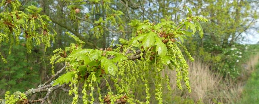 Nature TodayIn april barst de lente altijd uit haar voegen: planten bloeien en groeien er op los. Sommige bomen sluiten zich nu pas aan bij die groene uitbarsting, zomereiken komen bijvoorbeeld altijd wat later in het blad. Vaak in de loop van april, maar in warme lentes zoals dit jaar was dat al eind maart en begin april. Nu staan ze vol fris in blad – geliefd bij veel rupsen – en ook in bloei. De groene mannelijk katjes hangen naar beneden onder de bladeren. De roze vrouwelijke katjes zijn piepklein en staan in de bladoksels.