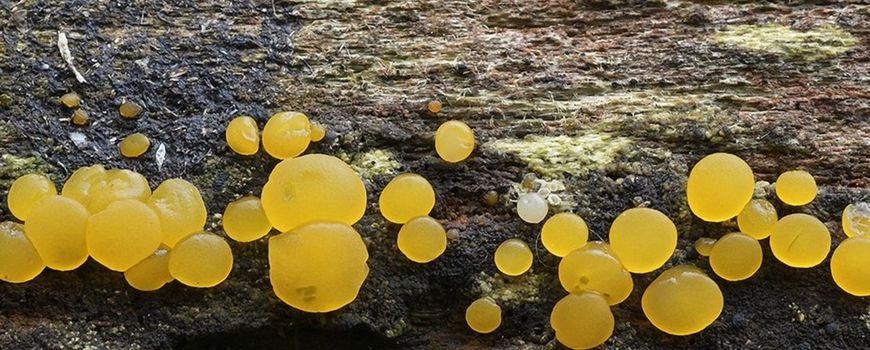 Nederlandse Mycologische VerenigingAan de foto’s was ook nog te zien dat het waarschijnlijk een Gesteelde druppelzwam (Dacrymyces capitatus) moest zijn, maar was dat ook zo? Jammer dat er geen enkel exemplaar van deze vondst was achtergehouden, want er wordt voor een juiste validatie vereist dat deze vondst microscopisch moet worden gecontroleerd. De reden waarvoor deze regel is afgesproken is de sterke gelijkenis met de Wortelende druppelzwam (Ditiola radicata). Deze soort is echter al sinds 1987 niet meer waargenomen in Nederland. Ook op de Rode Lijst staat deze soort aangegeven als 'verdwenen uit Nederland'. Toch moeten de regels in acht worden genomen omdat deze zijn afgesproken voor een juiste validatie. De regels worden door een speciale commissie aangepast indien de noodzaak daarvan blijkt. Het blijft onveranderd dat de Gesteelde druppelzwam in het veld niet kan worden onderscheiden van de Wortelende druppelzwam. Het kan zonder microscopisch onderzoek zomaar gebeuren, ook al is de kans klein, dat je een Wortelende druppelzwam hebt gevonden en deze doorgeeft als een Gesteelde druppelzwam. En andersom uiteraard ook. Doodzonde om zo’n prachtvondst die op de Rode Lijst staat aangegeven als 'verdwenen uit Nederland' voor een gewone soort aan te zien.