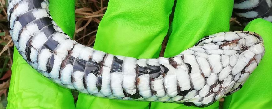 Heeft u een dode slang gevonden of een slang gezien met verdachte symptomen, al dan niet gecombineerd met afwijkend gedrag? Maakt u dan alstublieft goede foto’s (inclusief goede detailopnames van de getroffen lichaamsdelen), noteer de exacte datum en locatie en neem contact op met Tariq Stark van RAVON.