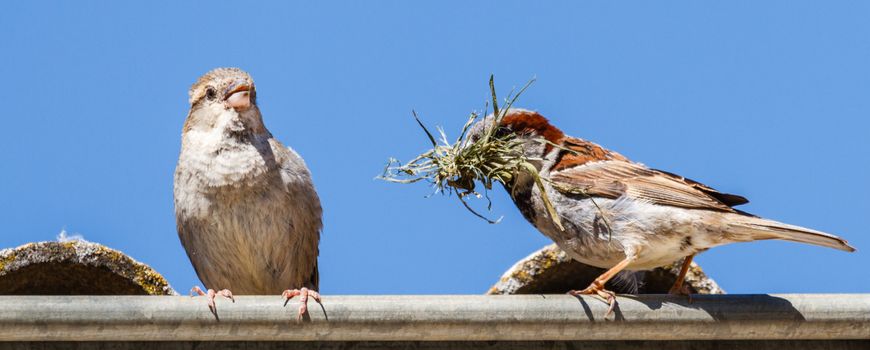 Vogelbescherming NederlandNet als de meeste typische zaadeters, heeft ook de huismus in het broedseizoen eiwitrijk voedsel nodig. Insecten en geleedpotigen dus, zoals spinnetjes en pissebedden, en hun larven. Zowel de oudervogels als de jongen hebben de eiwitten uit dit kleine gedierte hard nodig. Zonder dierlijk voedsel kunnen de vrouwtjes geen eieren leggen en de jongen niet goed groeien. In de eerste twee weken krijgen de nestjongen vooral zachte insecten, zoals bladluizen, muggen, vliegen, vliegmieren en rupsen. De mussen voeren de jongen tot nog ongeveer twee weken na het uitvliegen. De maaltijd die de oudervogels aan de jonge vogels geven, bestaat voor een steeds groter deel uit plantaardige ingrediënten.