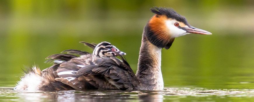 Nature TodayOp de rug van hun ouders ontdekken pasgeboren futen de wereld. Ze zijn zwart-wit gestreept. Een paar dagen nadat ze uit het ei zijn gekropen, kunnen de kuikens al zwemmen. Toch nemen de ouders hun jongen nog vaak op de rug mee. Zo zijn ze beter beschermd tegen allerlei vijanden, zoals roofvissen en reigers. Na ongeveer tien weken zijn de jongen zelfstandig. Tot die tijd worden ze gevoerd door hun ouders. Die zijn goed te herkennen aan hun witte ‘gezicht’ met een roodbruine en zwarte verenkraag eromheen. De fuut kan overal leven, zolang er maar water is: van stadsparken en grachten tot duinmeren en moerasgebieden. Futen kunnen goed onder water zwemmen en jagen dan voornamelijk op vis. Ze wisselen hun menu af met insecten, weekdieren, kikkervisjes, kikkers en planten.