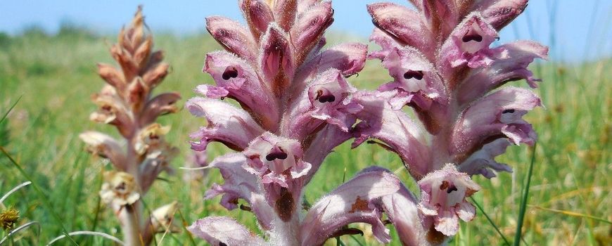 Nature TodayBij een bezoekje aan de duinen kun je nu een hele aparte bloeiende plant tegenkomen: waltstrobremraap. Bremrapen zijn parasitaire planten die via hun wortels voedingsstoffen opnemen uit de wortels van een gastheerplant. De zeer zeldzame grote bremraap doet dat bij brem, maar andere bremrapen hebben andere gastheren. De planten doen zelf niet aan fotosynthese en hebben dus ook geen chlorofyl, de stof die planten groen kleurt. Daarom zien ze er vreemd bleek uit. De meeste bremrapen zijn zeer zeldzaam, maar walstrobremraap kan je nog wel eens tegenkomen in de Zeeuwse en Hollandse duinen (tot aan Bergen, niet noordelijker). Ze bloeien nu met grote lichtrode of bruinig paarse bloemen die sterk kruidig ruiken.