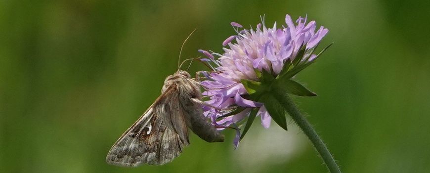 Nature TodayAls je vaak ’s avonds in de schemering nog een rondje loopt, heb je misschien de driftig rondzoemende gamma-uilen alweer gezien. Dit is een trekvlinder uit Zuid-Europa die soms in grote aantallen naar Nederland vliegt, zoals ook vorig jaar. De rupsen komen aan het eind van de zomer uit en de nieuwe generatie vlinders vliegt terug naar het zuiden. Dit jaar zijn er al vroeg in het jaar veel gamma-uilen, het zou zomaar kunnen dat een deel daarvan als rups of pop hier heeft kunnen overwinteren. Gamma-uilen vliegen ook overdag en ze worden veel in tuinen en in stedelijke omgeving gezien. Ze zijn grijs of bruin getekend met een y-vormige, witte vlek (de gamma). Door het driftige gefladder denk je misschien aan een kolibrievlinder. Maar die hebben oranje vleugels, zijn anders van vorm en hangen in de lucht een stuk van de bloem af, die ze met hun lange roltong leegzuigen. De gamma-uil hopt van bloem naar bloem, maar houdt zich wel overal eventjes vast.