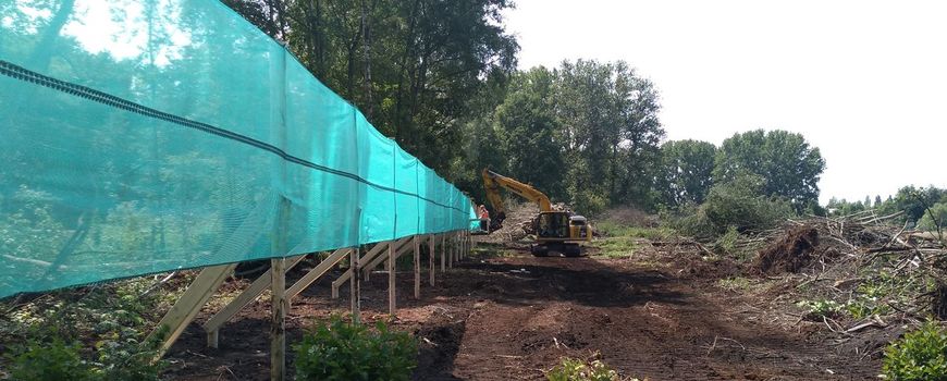 - Tijdelijke vleermuisschermen plaatsen bij deze bosstroken. Deze schermen bestonden uit 3,5 meter hoge palen met een doorlopend steigerdoek van 2 meter hoog.
