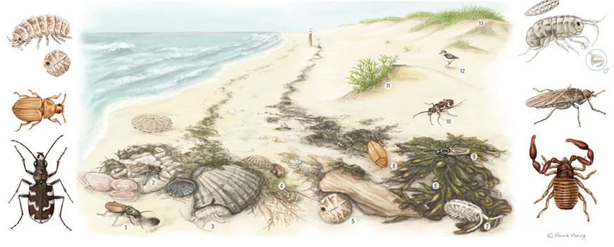 Stichting ANEMOONWij mensen beseffen meer en meer dat we onze aarde delen met wezens waar we niet zonder kunnen, al lijken ze onbelangrijk. Met de sterke afname van bijen en andere bestuivers groeit het begrip voor de kleine, obscure, vaak verborgen levende wezens om ons heen. Neem nou het strand. Weinig mensen beseffen dat dit helemaal geen kale zandbak is, maar de leefomgeving van een bijzondere groep dieren. Gezamenlijk vervullen die een cruciale taak op de grens van land en zee. Overal waar het door de golven achtergelaten natuurlijke aanspoelsel blijft liggen kun je er vertegenwoordigers van tegenkomen.