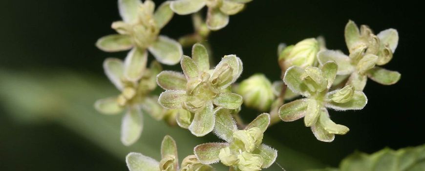 Als u toch dat loepje in de hand heeft, speur dan ook naar de bloemen. Hop (Humulus lupulus) heeft of vrouwelijke, of mannelijke bloemen. De mannelijke zie je niet vaak omdat ze supersnel uitgebloeid raken. De vrouwelijke bloemen veranderen in de bekende hopbellen, die menig bieretiket sieren.