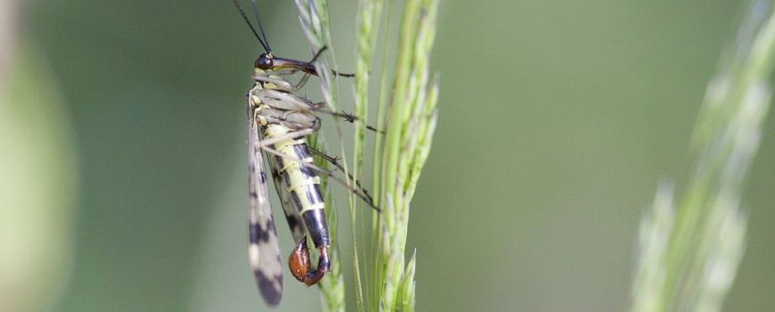 Nature TodayMet zijn lange snuit, een tijgerprint op zijn vleugels en zijn flinke formaat ziet de schorpioenvlieg er gevaarlijk uit. Zijn naam suggereert ook niet veel goeds. Hun naam danken ze echter niet aan hun giftigheid of angel, maar aan het tangvormige aanhangsel dat bij de mannetjes aan het achterlijf zit. Ze krullen dat omhoog, en dat doet wel wat denken aan een schorpioen. Ze kunnen er niet mee steken en gebruiken hem alleen bij de paring. Hun lange steeksnuit zullen ze niet snel in een mensenhuid prikken, ze gebruiken hem om andere insecten te doorboren en leeg te zuigen. In Nederland leven vijf verschillende soorten schorpioenvliegen, maar de verschillen zijn erg klein. Wist je dat schorpioenvliegen een trucje hebben om niet aan een spinnenweb te blijven kleven? Nog veel meer leuke weetjes over de schorpioenvlieg zie je in dit filmpje.