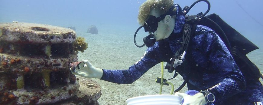 Foto's: Alwin Hylkema (leadfoto: onderzoeker plaatst zeeslakken op een kunstmatige rif)