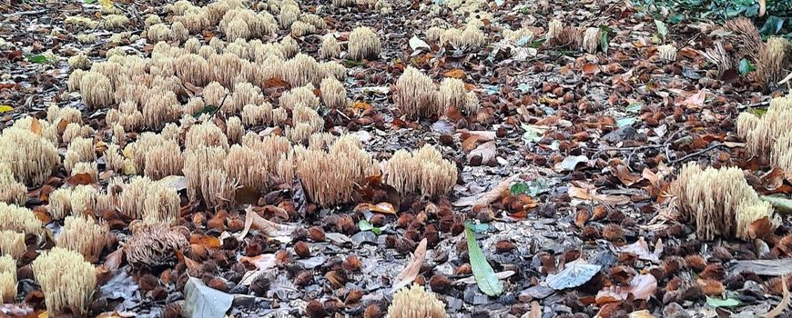 Unieke hoeveelheid Rechte koraalzwammen gevonden op bospad