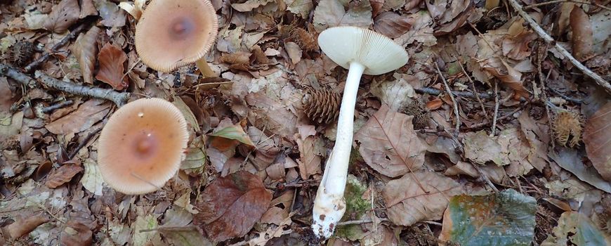 Nature TodayU kent vast de vliegenzwam wel: een mooie paddenstoel met steel, een 'rokje' en een rode hoed met witte stippen. Vliegenzwammen behoren tot de groep van de amanieten. Ze komen uit een knol, waarvan je de restanten onderaan de steel kan terugvinden. De roodbruine slanke amaniet is ook een amaniet, maar is een vreemde eend in de bijt. Hij heeft namelijk geen rokje. Alle andere in Noordwest-Europa bekende amanieten – meer dan twintig soorten – hebben wel zo'n rokje. Wat je wel altijd goed kan zien, is de knol waar hij uit voortkomt. Vind je nu een mooie slanke paddenstoel met een lichtbruine hoed met een ‘gekamde’ rand, een kleine verhoging in het centrum, een witte steel, en de restanten van een knol, dan heb je een roodbruine slanke amaniet gevonden.