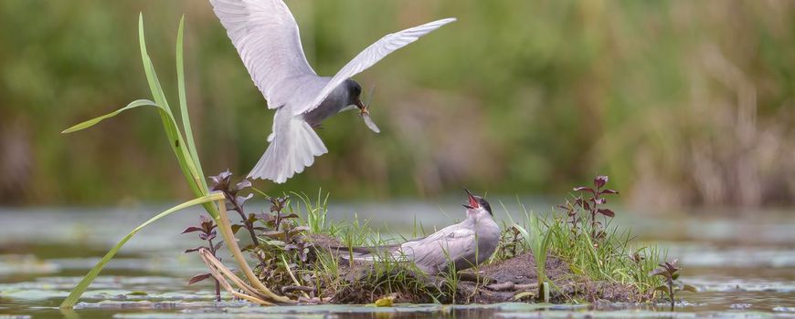 De zwarte stern is een trekvogel die tot de familie van meeuwen behoort. In het voorjaar strijkt de zwarte stern onder meer in Nederland neer om voedsel te zoeken en te broeden. De kuikens worden grootgebracht en klaargestoomd voor een lange reis naar Afrikaanse kustgebieden om daar te overwinteren. Voordat het zover is heeft het ouderpaar een waslijst aan voorwaarden. Allereerst zijn het koloniebroeders. De hele kolonie broedt bij elkaar in de buurt. Dit doen ze in halfopen water, het liefst op drijvende watervegetatie in een omgeving waar veel insecten aanwezig zijn. "Ook een aangename plek om te foerageren is een vereiste, zo moet er vanaf de slootkant zo’n 2,5 meter oeverbegroeiing overblijven", aldus Remy Sanders, boswachter beheer.