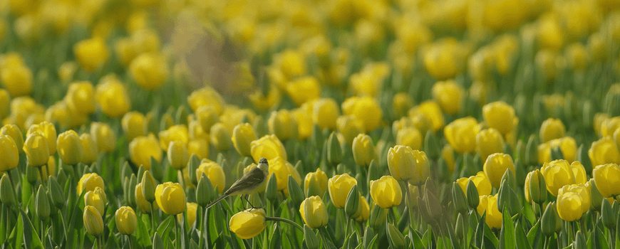 Nederlands Instituut voor Ecologie (NIOO-KNAW)Veel akkervogels, zoals de gele kwikstaart en veldleeuwerik, broeden volop in de bollenvelden van de Duin- en Bollenstreek, waar ze hun nest verstoppen tussen tulpen, narcissen en hyacinten. Hier staat het agrarisch gebied niet bekend om zijn biodiversiteit. Ondanks dat het totale middelengebruik in de bollenteelt al is afgenomen, wordt in deze teelt relatief veel gebruik gemaakt van gewasbeschermingsmiddelen en ook insecticiden. Over de schadelijke effecten voor vogels door gebruik van neonicotinoïden, een groep insecticiden, kwam onlangs nog een bericht naar buiten. Men zou daarom kunnen verwachten dat in de bollenteelt weinig insecten te vinden zijn. Dit strookt echter niet met het gegeven dat insectenetende akkervogels hier zo goed gedijen, terwijl rondom bollenvelden nauwelijks specifieke maatregelen voor akkervogels worden getroffen. Maar hoe goed gaat het precies met deze akkervogels? Brengen zij wel succesvol jongen groot in dit landschap? Waar halen ze hun voedsel vandaan? En in wat voor conditie verkeren de jongen? Met het oog op biodiversiteitsverbetering in de landbouw zou het dus interessant zijn om te weten wat er in dit systeem aan de gang is.