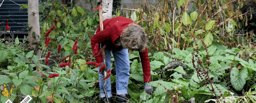 Irene volgt de gratis workshop die wordt aangeboden door Natuur voor Elkaar. “Ik leer allemaal nieuwe dingen, maar ik zit er vooral omdat ik graag wil samenwerken met collega’s die ook ecologisch willen tuinieren”. Dan legt ze haar schop neer. Ze is klaar voor vandaag. Nog even een laatste blik in de prachtige wilde tuin. “Kun je je voorstellen dat ik eerst secretaresse ben geweest?” Ze giebelt zachtjes. “Nee, het tuinieren komt echt rechtstreeks uit mijn hart”.