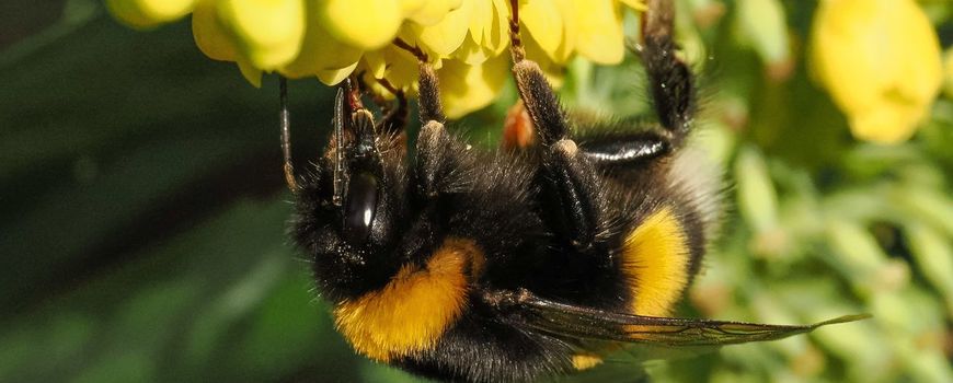 Foto’s: Gert Huijzers (leadfoto: een koningin van de aardhommelgroep fouragerend op mahonie)