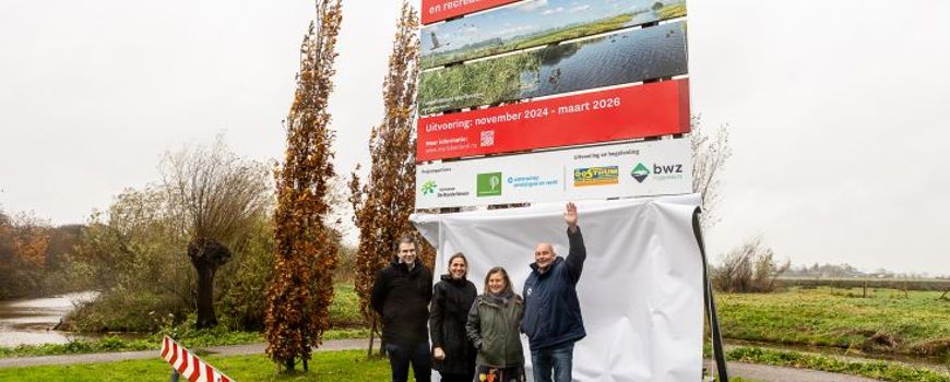 Tekst, foto en video: Provincie Utrecht (leadfoto: bestuurders van samenwerkende partijen onthullen bouwbord aan de rand van nieuw te ontwikkelen natuurgebied Marickenland. Personen op de foto (van links naar rechts): Cees van Uden, Mirjam Sterk, Jelka Both en Arjan van Rijn.