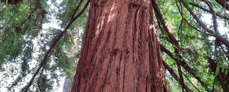 De groep van een dozijn mammoetbomen is nog jong, maar nu al een indrukwekkende verschijning met hun heldergroene, afhangende takken en donkerbruine bast. De kustmammoetboom is ook nog een jong exemplaar en staat iets verderop in het gazon. Deze heeft een meer rechtopgaande groeiwijze en de naalden en twijgen verschillen sterk met de andere reuzen. Wat beide soorten gemeen hebben, is dat ze uitsluitend voorkomen in enkele bergbossen en langs de hoger gelegen kustgebieden van Californië.