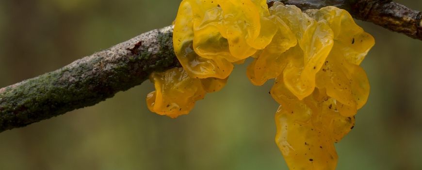 Nature TodayTijdens de donkere dagen is de gele trilzwam een opvallende, vlammende aanwezigheid in het bos. Zolang het niet hard vriest en er eiken groeien kan je ze zien, als dikke geel tot feloranje ballen. Bij strenge vorst verdroogt de gele trilzwam en verschrompelt tot een taai donkeroranje velletje, maar na de vorst en een regenbuitje kan hij ook zo weer opzwellen. Als het veel regent, kan hij verbleken tot bijna doorschijnend en kleurloos. Zijn levenswijze is erg bijzonder, want de gele trilzwam is een parasiet. Hij leeft niet van dood hout, maar van een andere paddenstoel, de paarse eikenschorszwam.