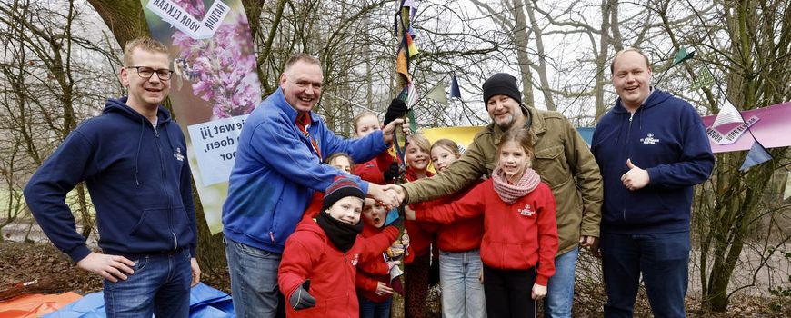 Foto's: Femke Teussink (leadfoto: kinderen van scoutingvereniging Sint Stephanus Martina uit Borne en Fedde Boersma, directeur Scouting Nederland, ontvingen de 1,1 miljoenste boom uit de handen van gedeputeerde Martijn Dadema)
