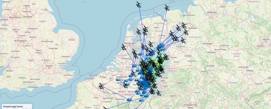 Wageningen UniversityAls het ’s ochtends zo koud is en er lokaal zelfs geschaatst wordt op natuurijsbanen zou je niet meteen denken dat er al trekvogels staan te springen om naar hun noordelijke broedgebieden te vliegen. Toch is het weer in Zuid-Europa al behoorlijk aangenaam. En precies daar zit voor kraanvogels de trigger om massaal te beginnen aan hun voorjaarstrek. De afgelopen week waren er daardoor al regelmatig groepen van tientallen tot zelfs honderden kraanvogels te zien boven Nederland en België. Deze groepen zijn allemaal mooi opgepakt door de Kraanvogelradar, waarmee de trek online goed te volgen was.