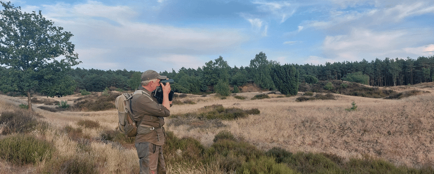 StaatsbosbeheerHet is juli 2024 als Sovon-onderzoeker Symen ’s avonds het gebied in gaat. Voorzien van een verrekijker, een tablet en een scherp gehoor gaat hij deze avond nachtzwaluwen tellen. “Samen met collega’s tellen we op verschillende tijdstippen onder meer het aantal boomleeuweriken en nachtzwaluwen. De ene keer noteren we wat we zien en horen, de andere keer het aantal nesten.” Terwijl de schemer inzet, telt hij tientallen boomleeuweriken. “Deze vogels broeden op de grond en zijn erg verstoringsgevoelig. Als ze te veel gestoord worden door recreanten, verlaten ze hun nest en mislukt de broed.” Symen doet al zo’n 25 jaar verschillende onderzoeken in dit gebied. “Toen broedden hier nog duinpiepers. Prachtige vogeltjes die in mooie golfvlucht vliegen. Jaren geleden zijn ze verdwenen.”