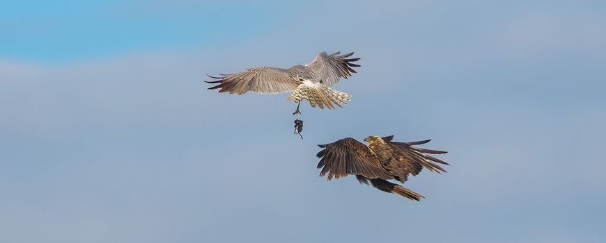 Beeld: Hans Hut, Cinema Hut (leadfoto: prooioverdracht tussen steppekiekendief en bruine kiekendief, Groningen, juli 2022)