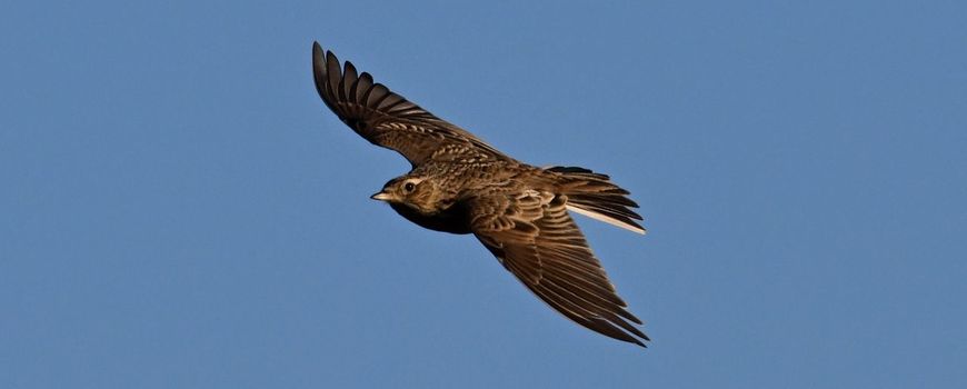 Het kan niet lang meer duren. Eind maart zal de veldleeuwerik de lente aankondigen. Tientallen meters klimt hij omhoog om zich daarna weer ter aarde te storten. Onvermoeibaar zingend.