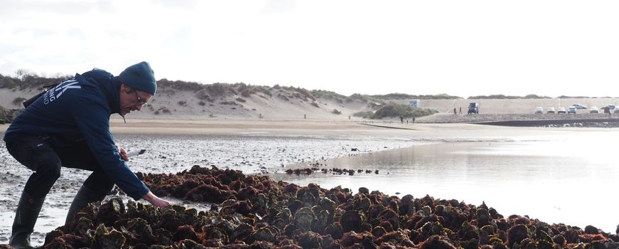 In het rif is slechts één Europese platte oester te ontdekken. Voor de rest zijn er vooral Japanse oesters – een uitheemse soort die een groot deel van het rif heeft gekoloniseerd. “Toch kan ook de Japanse oester een goede rol spelen”, legt Montserrat uit. “Onze inheemse platte oester kan ervan profiteren: de veel grotere schelpen van de Japanse oester geven veel oppervlak om aan te hechten.”