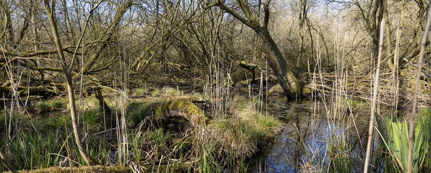 Hier groeien elzenzegge, ijle zegge, kleine valeriaan, grote boterbloem en gele lis in de kruidlaag. Voor de zwarte els is het hier te nat, maar de grauwe wilg doet het goed. Dat is ook de waardplant van de grote weerschijnvlinder, een zeldzame vlindersoort. De rupsen doen zich tegoed aan het blad. De vochtige stammen van de wilg zitten vol met mossen zoals blauw boomvorkje en hier en daar een eikvaren.”