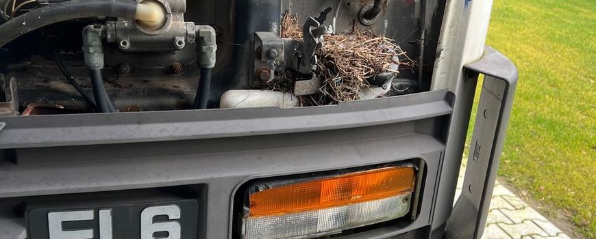Witte kwikstaarten maken nest in cabine van vrachtwagen
